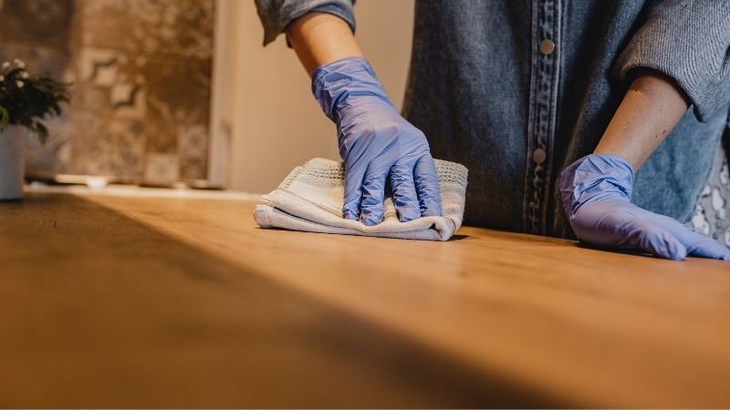 3. きれいな水で濡らした布で洗剤を拭き取ります。