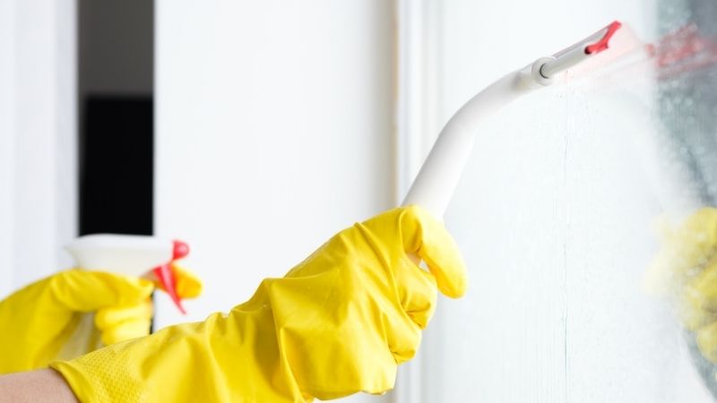 2. ガラスクリーナーをスプレーし、きれいな布やペーパータオルで拭き取ります。